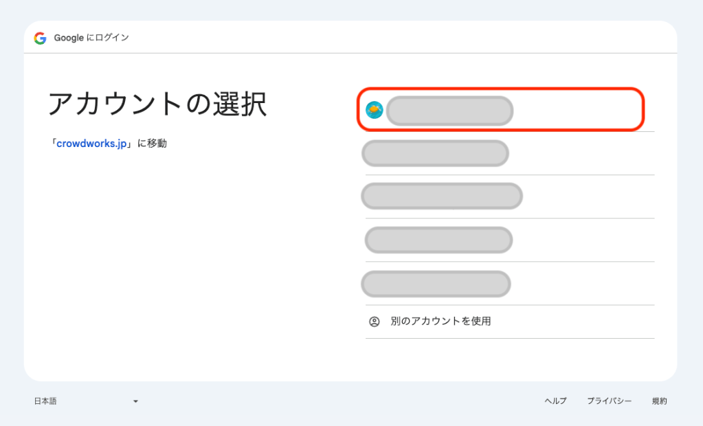 するとそのブラウザでログインしたことがあるGoogleアカウントが複数出てくるので、今後ログインで使いたいアカウントを選択します。